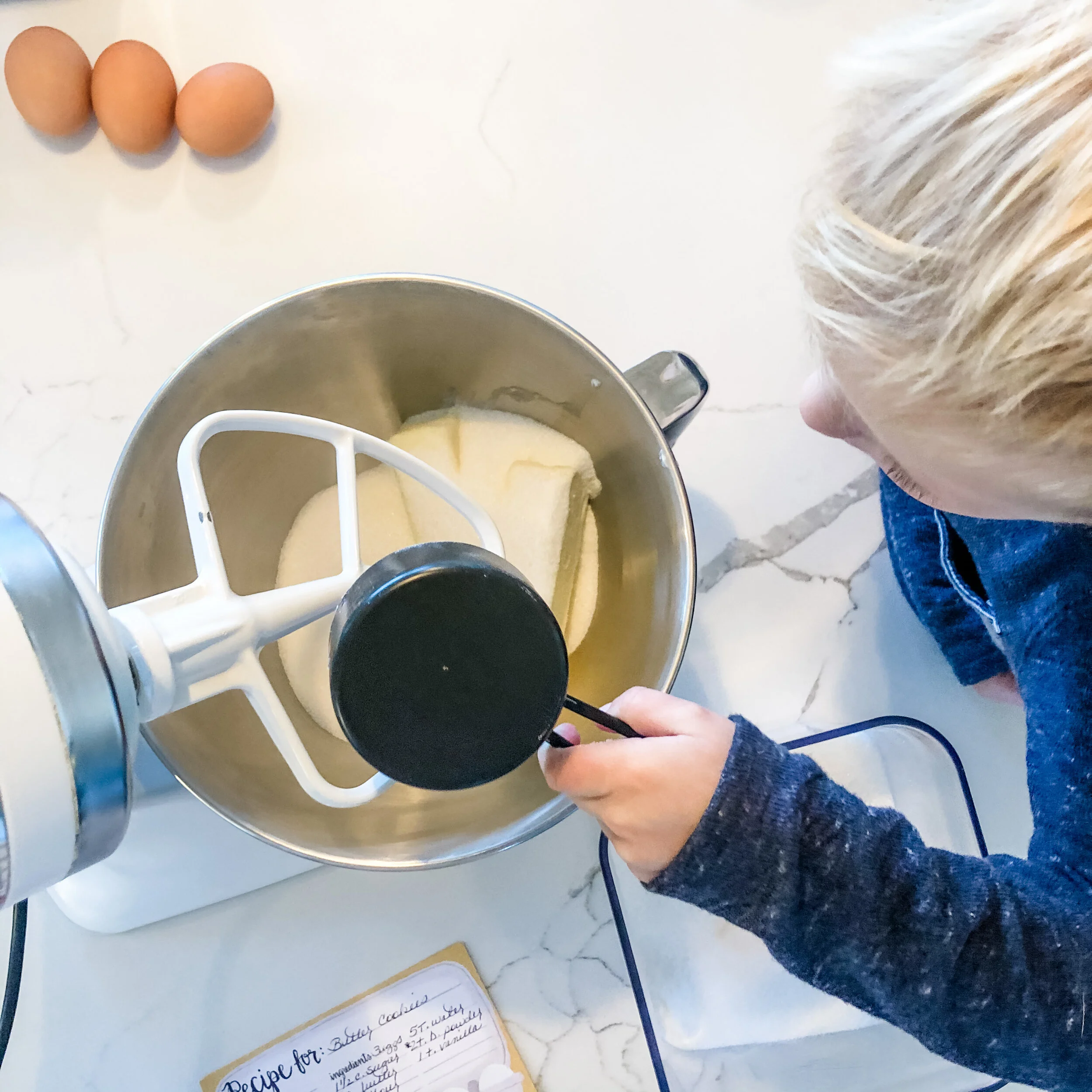 - Cream the butter and sugar then add in the eggs.